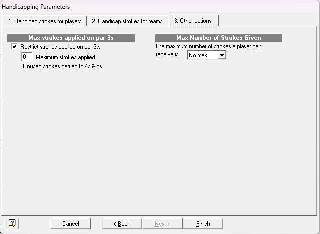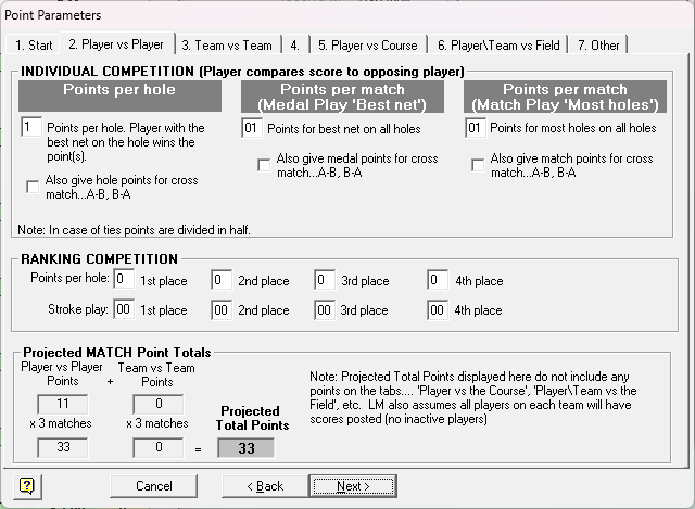HANDICAP PARAMETERS POINT CALCULATION PARAMETERS